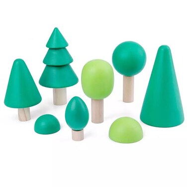 Green forest is ideal for storyline games. It sparks imagination and creates a full forest scenario especially when matched with our animals set and rainbow houses to create the full scene. They provide hours of open-ended play. Help kids learn comparison between hights, light and dark colors and different shapes. Can be an introduction to teach children of different types of trees, nature around us and how to help protect our environment.