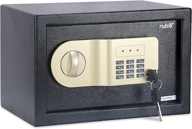 Electronic Digital Safe Box with Key and Pin Code Lock (20x31x20cm) Black