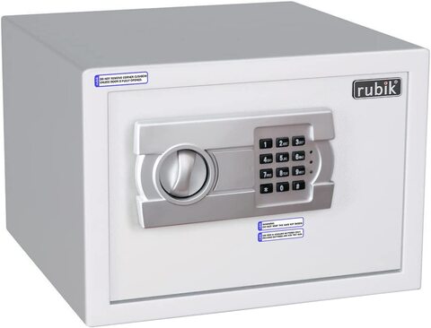 Rubik A4 Document Size Safe Box Locker Security Safety Deposit With Key and Keypad Keyless Entry RB25 (25x35x25cm) White