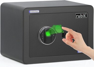 Rubik Fingerprint Safe Box Small, A4 Document Size Biometric Lock With Key, Fire Resistant Powder Coating, For Home Office Cash Money Documents (RB-25YFP, 25x35x25cm) Black