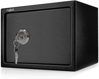 Rubik Key Operated Locker Safe Deposit Box Security Money Cash Safety Box With Key For Home Office 25K - Black