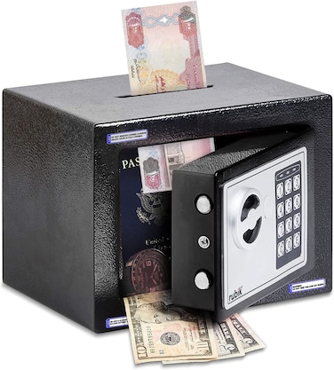 Rubik Mini Cash Deposit Drop Slot Safe Box with Key and Pin Code Option (Black)