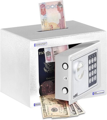 Rubik Mini Cash Deposit Drop Slot Safe Box With Key And Pin Code Option (White)