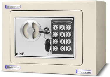 Rubik Small Safe Box with Key and Digital Security Keypad Lock for Home Office Hotel Business Jewelry Money Cash Storage - Off White