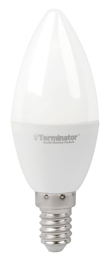 - If you are tired of paying enormous electricity bills every month then it is time you change your bulbs and lamps and replace them with this LED Bulb from Terminator. It fits right in E14 screw bulb holder you have at home and it made from some durable materials which will last for a long time. The light this bulb emits is warm white which is quite soothing and relaxing on the eyes and won't cause them to strain or ache. You can never go wrong with an LED Bulb. The Terminator warm white LED Bulb is having 5 watts power capacity has quite high luminosity (400 lumens) with respect to normal bulbs and consumes very less amount of power in comparison as well.