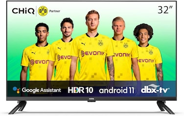 Chiq 32 Inch, HD, LED Smart TV, L32G7P, Black (Android 11.0, HDR10, A+ Screen, WiFi, Bluetooth 5.0, Netflix, YouTube, Prime Video, Full Screen Display, HDMI, USB)