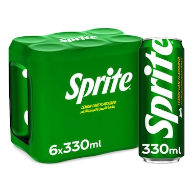 Sprite Lemon-Lime Flavoured Carbonated Soft Drink Can, 330ml Pack of 6