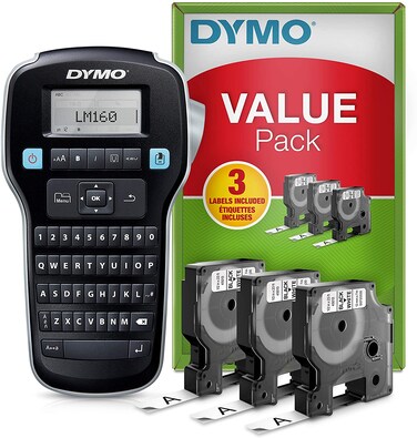 Dymo Label Manager, 160 Label Maker Starter Kit Handheld Label Maker Machine (+ 3 tape 12mmx7 mtr White) QWERTY Keyboard Ideal for Office or Home (VALUE PACK)