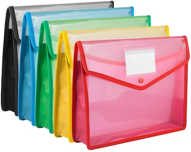 Essen Plastic File Folder Clear Transparent Bag Expandable File Organizer Document Holder - Set of 5 colors