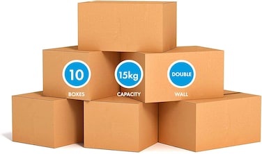 Markq [10 Pack] Small Double Wall 100% Recyclable Corrugated Cardboard Moving Boxes with 15 KG capacity, 41 x 33 x 33 cm Brown Carton for Packaging, Shipping and Storage, 5 ply