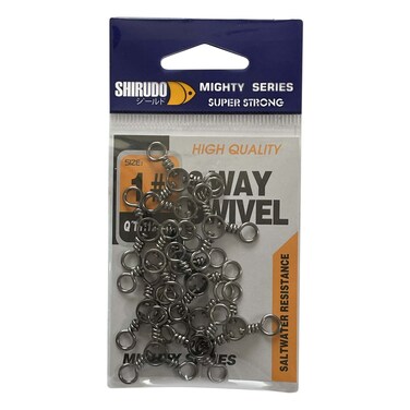 The Shirudo Mighty Series 3-Way Fishing Swivel in Silver, Size 1, comes in a pack of 12 pieces, making it a convenient and cost-effective option for anglers. These swivels are designed to provide smooth rotation and reduce line twist, allowing for better presentation of bait or lures.