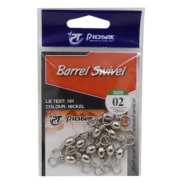 The Pioneer Barrel Swivel Size 2 Nickel 12 PCS is a must-have for any angler looking to improve their fishing experience. These high-quality swivels are durable and reliable, ensuring that your line stays tangle-free while reeling in your catch.