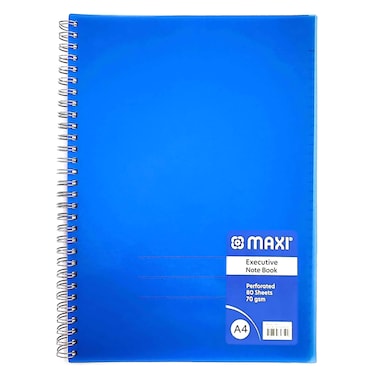 The Maxi A4 Spiral Bound Hard Cover Executive Notebook is a high-quality notebook with a durable hard cover and spiral binding.