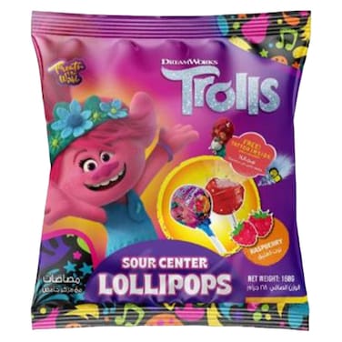Mioo DreamWorks Trolls Sour Center Lollipops Raspberry 168g