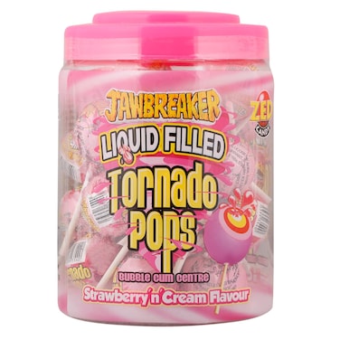 Zed Candy Jawbreaker Tornado Pops Strawberry 'N' Cream Liquid Filled Lollipops, 33g Pack of 30