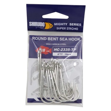 The Shirudo Mighty Series Round Bent Sea Hook HC-2335-TP Silver 12 PCS is a high-quality fishing hook that is perfect for saltwater fishing. The round bent design ensures a secure hook set, while the silver color adds a touch of style to your tackle box. With 12 hooks in each pack, you'll have plenty to last you through multiple fishing trips.