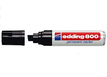 <li></b> The edding 800 Permanent Marker uses a broad chisel tip with a line width of 4 - 12 mm, and is great for tasks that require bold and free-flowing writing. The marker will write smoothly on almost all surfaces including plastic, metal, glass and wood.
