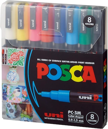 - Posca Paint Marker Pen - PC-3M Extra Fine 0.9-1.3 mm, 8 Colors