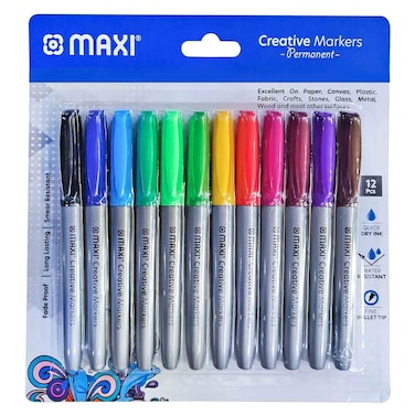 The Maxi Creative Bullet Tip Permanent Markers MX-40-12A Multicolour 12 PCS are a set of vibrant and long-lasting markers perfect for all your creative projects.