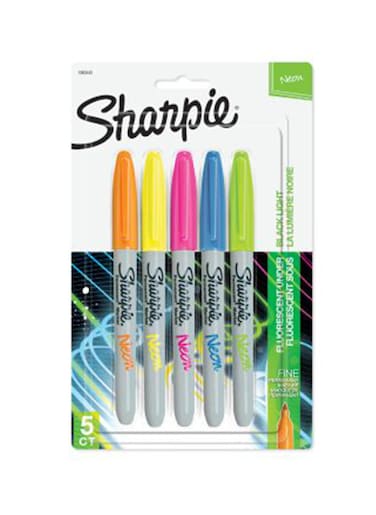 • (1)Bright in the day, the colors are vivid in natural light(2)Luminous under black, the ink glows fluorescent under black light(3)Signature Sharpie permanent multi-surface ink writes boldly on paper, plastic, wood, and leather(4)Quick-drying, AP certified ink formula resists water, smearing, and fading(5)Go electric with Neon Green, Neon Orange, Neon Blue, Neon Yellow, and Neon Pink Sharpie markers.