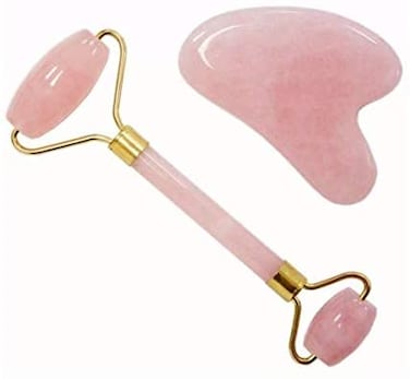 Generic Face 2 In 1 Gua Sha Tools Including Rose Quartz Roller And Jade Face Massager Natural Jade Facial Roller Anti Aging Face Roller Massager Facial Jade Roller