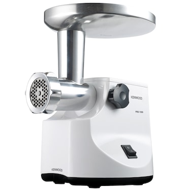 About the Meat Grinder MG470 The 1500W Kenwood Meat Grinder MG470 with high gloss white finish, brushed metal detailing and sturdy design makes it the perfect fit for a modern kitchen. VersatilityThe Kenwood MG470 Meat Grinder comes with a die cast metal hopper, with meat dish and dust cover, three screens for fine, medium and coarse mince and separate attachments for making sausages and kebbeSpecifications Attachments� Mincing screen size: XL� Meat minced per min: 1.5kg� Coarse mincing screen: Yes� Fine mincing screen: Yes� Kebbe maker accessory: Yes� Medium mincing screen: Yes� Plastic or metal hopper: Die cast metal� Sausage maker accessory: YesGeneral specifications� Wattage: 1500W� Weight: 4.64� Body material: Plastic� Guarantee: YesFunctions� Reverse function: YesMiscellaneous� Accessory storage: Yes� Cord storage: Yes� Pusher: Yes� Rubber feet: Yes
