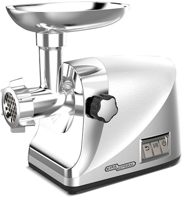 Super General 3-In-1 Electric Meat Grinder 1800W, Food Processor, Sausage Machine, 3 Stainless Steel Grinding Plates, Kubbe, Sausage Tubes, Domestic Use, Ce, Sgmg-87-Y