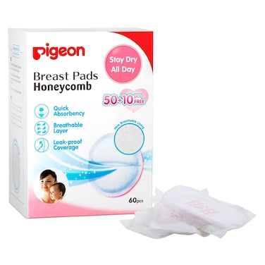 Each pack includes 60 breast pads, ensuring you always have a supply on hand. Trust Pigeon for all your breastfeeding needs.