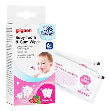 The Pigeon Strawberry Flavour Baby Tooth And Gum Wipes 78291 White Pack of 20 are specially designed to ensure proper oral hygiene for babies.