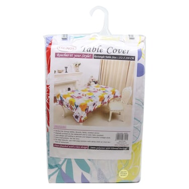 Measuring 152x228cm this multicoloured table cover is perfect for adding a pop of colour and style to your table. Made from high-quality materials it is durable and easy to clean making it perfect for everyday use or special occasions.