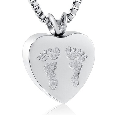 Charm baby foot heart cremation urn necklace made of 316L stainless steel waterproof