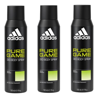 Adidas Pure Game Deodorant Body Spray for Men Deep and Aromatic 150ml Pack of 3