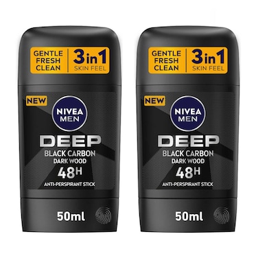 NIVEA MEN Antiperspirant for Men DEEP Black Carbon Stick 50ml Pack of 2