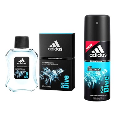 Adidas Ice Dive Eau De Toilette 100ml With Deodorant Body Spray 150ml Clear