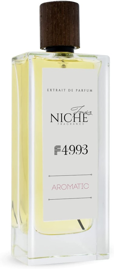 Faiz Niche Collection Aromatic F4993 Extrait is an Aromatic Fougere fragrance. The aroma is declared as profoundly new, crude, and honorable simultaneously. The synthesis is purportedly predominant with painstakingly chosen natural ingredients. The top notes are pepper and Calabrian bergamot, the middle notes are Geranium, Lavender, Sichuan pepper, Elemi, Pink pepper, vetiver, and patchouli. base notes are Cedar, Labdanum, and Ambroxan.