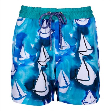 Anemoss Sailboats Men Swim Trunk is made of 100% polyester.This mens swimsuit has an elastic waistband with a drawstring to adjust the tightness according to your waist.It features a comfortable mesh liner for breathability and draining holes so they can quickly become lightweight once you get out of the water. There are 2 side-seam pockets and 1 back welt pocket to hold your essentials. The length of this beach short is 43 cm. Its shorter above-knee design provides easier movement.Anemoss Collection brand specializes in marine style on lightweight, breathable fabrics.This mens swimwear has a sailboat design with marine inspired colors and a proper finish.It is machine washable and offer quick-drying properties, which are ideal for a fast and active lifestyle.It's available in sizes S to XL and comes with a storage bag so it can be easily packed and separated from clean, dry clothes in your luggage, travel tote, or beach bag.You can wear these trunks for swimming, parties, running and exercising.