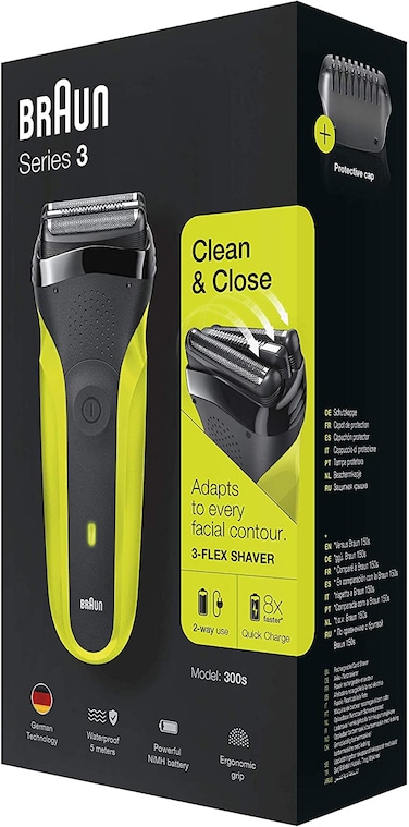 Braun Series 3 300 Electric Beard Shaver With 3 Flexible Blades, Rechargeable And Wireless, Washable Foil Electric Shaver, Black/Green Electric