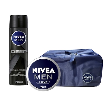 NIVEA MEN Antiperspirant Spray DEEP 150ml + Face Body & Hands Cream Moisturising Tin 75ml