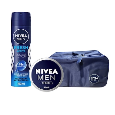 NIVEA MEN Antiperspirant Spray for Men Fresh Active150ml + Face Body & Hands Cream Moisturising Tin 75ml