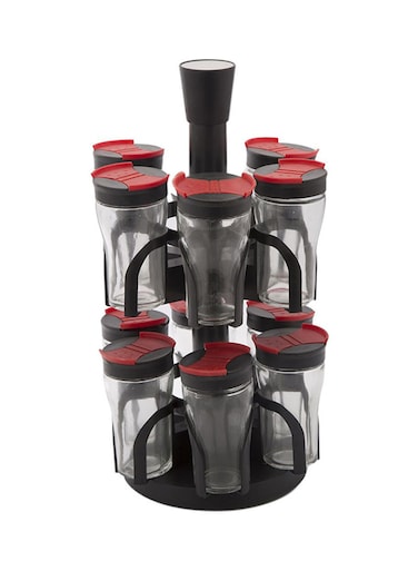 - <p>Serves to be an outright necessity in your kitchen<p>Ideal for managing accommodation of your favourite herbs and spices<p>Outfitted with an easy to-open lid to preserve the essence of condiments<p>Contains a sturdy stand to keep all the jars organised<p>Color: Clear/Black/Red<p>Model Number: 2724316284265