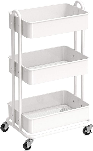 - Heavy-duty 3-tier metal rolling utility cart for storage and saving space