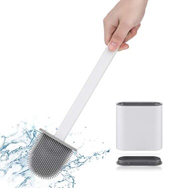AceMining Toilet Brush and Holder Silicone Bristles with Non-Slip Long Handle Floor Standing Holder & Wall Mounted Without Drilling Quick Drying (White)