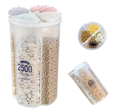 - Kitchen and Dining Type : Food Containers Capacity : Four-partition(2500ml) Marterial : PP Unavailability of microwave ovens Tight Seal With plastic lids For food, herbs, coffee, confectionery sugar tea etc.