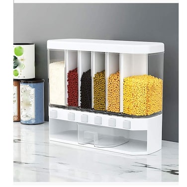 Cereal Container Food Storage Containers, Wall-Mounted Rice Storage Tank, Sealed Storage Grains Divided Grid Wall-Mounted Dry Food Dispenser Grain Storage Dispenser