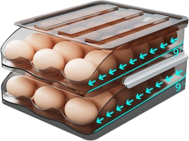Egg Holder for refrigerator Automatic Rolling,Egg Tray Fridge Organizer For Household,Egg Storage Rack,Refrigerator Storage Container,Egg Storage box,Egg Tray Food Container (2)