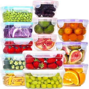 Food Storage Containers with Lids, Plastic Food Containers with Lids, Leak Proof Airtight Storage Container Sets for Kitchen, Easy Snap Lock Lunch Box, BPA-Free [13 Pack]