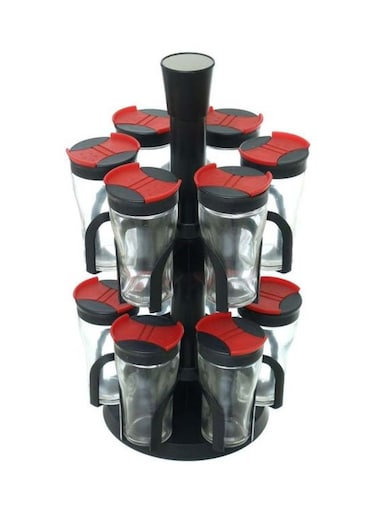 Generic 12 Glass Spice Jar With Rack Clear/Black/Red