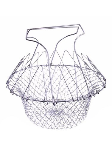 <li></b>Deal for deep frying and serving dry snacks<li>Safe to use hence no welding injury, no edges, no shedding<li>Can be folded for easy storage</br></br><b><u>Features</b></u></br><li>Color Name : Silver<li>Material : Stainless Steel<li>Model Number : H22709
