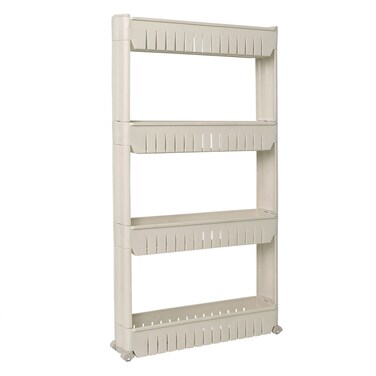 Generic Kitchen Rolling Slim Storage Cart Shelves Trolley Organizer Plastic White 4-Tiers