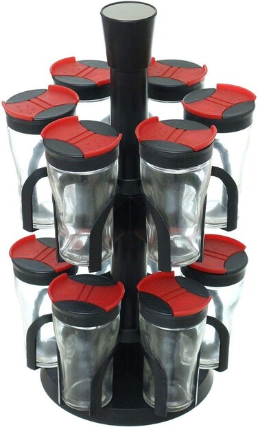 Generic Spice Rack With 12 Glass Jar Bottles - Revolving Countertop Carousel Herbs And Spices Set For Kitchen Counter
